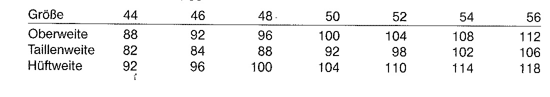 Mass-Tabelle